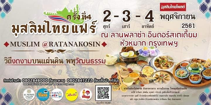 “งานมุสลิมไทยแฟร์”ถือเป็นงานใหญ่ประจำปีของพี่น้องไทยมุสลิม ซึ่งจะจัดขึ้นในต้นฤดูหนาวของทุกปี สำหรับในปีนี้ได้จัดขึ้นเป็นครั้งที่ 4 ภายใต้แนวคิดหลักคือ “Muslim@Ratanakosin” วิถีงดงามบนแผ่นดินพหุวัฒนธรรม ระหว่างวันที่ 2-4 พฤศจิกายนนี้ ณ ลานพลาซ่าอินดอร์สเตเดี้ยม หัวหมาก กรุงเทพฯ