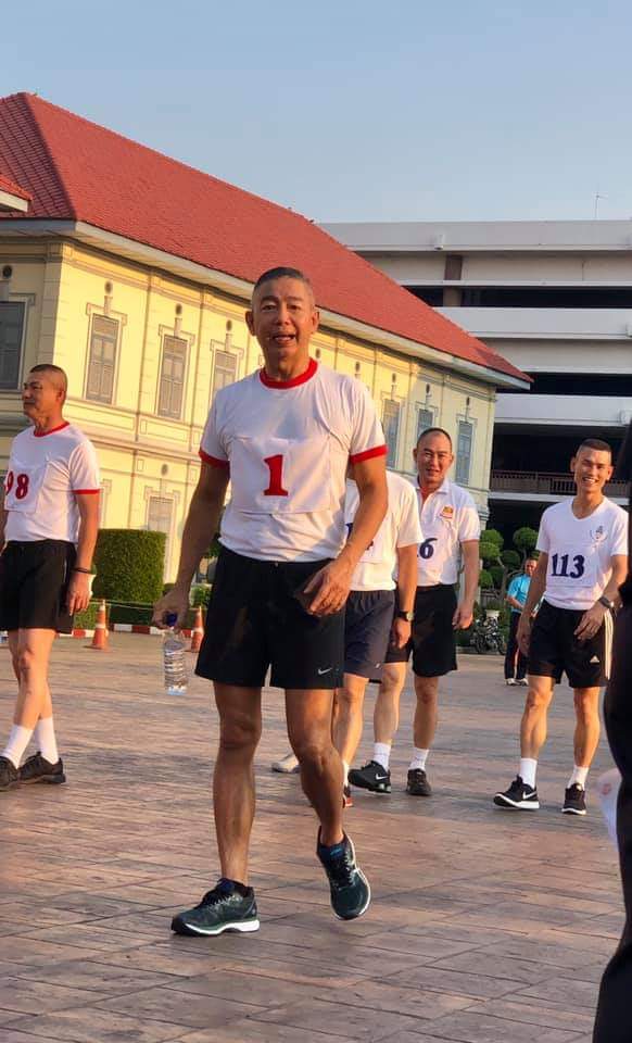“บิ๊กแดง” พลเอก อภิรัชต์ คงสมพงษ์ ผบ.ทบ. สวมเสื้อยืดขาว”คอแดง”ของทหารฉก.ทม.รอ. 904 หมายเลข 1 นำ 5 เสือทบ. ทดสอบร่างกายประจำปี