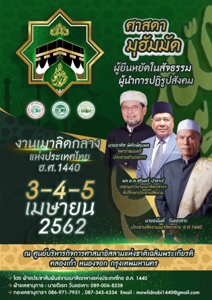 งานเมาลิดกลางแห่งประเทศไทย ประจำปีฮิจเราะห์ศักราช 1440 ประจำปี 2562 กำหนดให้จัดขึ้นระหว่าง วันที่ 3-5 เมษายน 2562 โดยได้รับพระกรุณาโปรดเกล้าโปรดกระหม่อม จากสมเด็จพระเจ้าอยู่หัวมหาวชิราลงกรณบดินทรเทพยวรางกูร ทรงเป็นองค์ประธานในพิธีเปิดงานในวันพุธที่ 3 เมษายน 2562 เวลา 17.30 น. ณ ศูนย์บริหารกิจการศาสนาอิสลามแห่งชาติ เฉลิมพระเกียรติ ถนนคลองเก้า แขวงคลองสิบ เขตหนองจอก กรุงเทพมหานคร