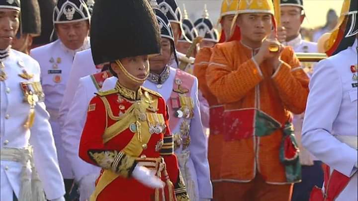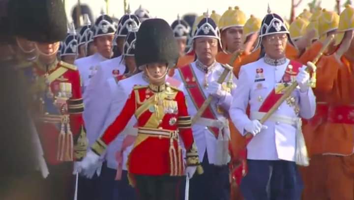 เวลา 17.03  น. พระบาทสมเด็จพระเจ้าอยู่หัว เสด็จฯ โดยขบวนพยุหยาตราสถลมารค ตามโบราณราชประเพณี ในการนี้ สมเด็จพระนางเจ้าสุทิดา พระบรมราชินี พร้อมด้วยสมเด็จพระเจ้าลูกเธอ เจ้าฟ้าพัชรกิติยาภา  นเรนทิราเทพยวดี  ทรงร่วมริ้วขบวนพระบรมราชอิสริยยศ พระดำเนินกระหนาบข้างคู่เคียงพระราชยาน ในฐานะที่ทรงดำรงพระยศเป็นราชองครักษ์ในพระองค์