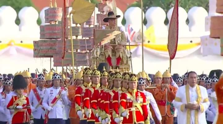 วันที่ 5 พ.ค.62 เวลา 16.49  น. พระบาทสมเด็จพระเจ้าอยู่หัว ทรงเครื่องบรมขัตติยราชภูษิตาภรณ์ ฉลองพระองค์ครุย สายสะพายมหาจักรี สายสร้อยจุลจอมเกล้า ทรงพระมาลาเส้าสูง และทรงพระแสงขรรค์ชัยศรี เสด็จพระราชดำเนินจากพระที่นั่งจักรพรรดิพิมาน ไปยังพระที่นั่งไพศาลทักษิณ เสด็จออกพระที่นั่งอมรินทรวินิจฉัย ทางพระทวารเทวราชมเหศวร เสด็จฯ ไปประทับรถยนต์พระที่นั่งทางพระทวารเทเวศรรักษา ไปยังพระที่นั่งดุสิตมหาปราสาท เพื่อเสด็จพระราชดำเนินเลียบพระนครโดยขบวนพยุหยาตราสถลมารค โดยพระราชยานพุดตานทองจากพระที่นั่งอาภรณ์พิโมกข์ปราสาท ในพระบรมมหาราชวัง ไปยังวัดบวรนิเวศวิหาร-วัดราชบพิธสถิตมหาสีมาราม-วัดพระเชตุพนวิมลมังคลาราม รวมระยะทาง 7.15 กิโลเมตร บริเวณถนนราชดำเนินกลางพระบรมวงศานุวงศ์เฝ้าฯ รับเสด็จพระบาทสมเด็จพระเจ้าอยู่หัวและชื่นชมพระบารมี