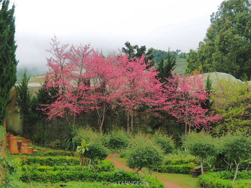 ในปีนี้ บนดอยอ่างขาง ดอกพญาเสือโคร่งหรือซากุระเมืองไทยบานตั้งแต่ปลายธันวาคม กระจายหลายแห่ง เป็นระยะๆ ตลอดเส้นทางขึ้นไปบนดอย ก่อนถึงโครงการหลวงที่ถือเป็นไฮไลท์ของดอยอ่างขาง จะผ่าน “บ้านหลวง” หมู่บ้านมุสลิมแห่งเดียวบนดอย มีมัสยิดอยู่ริมหน้าผา แม้จะไม่ใหญ่นักแต่รองรับคนละหมาดได้หลายสิบคน