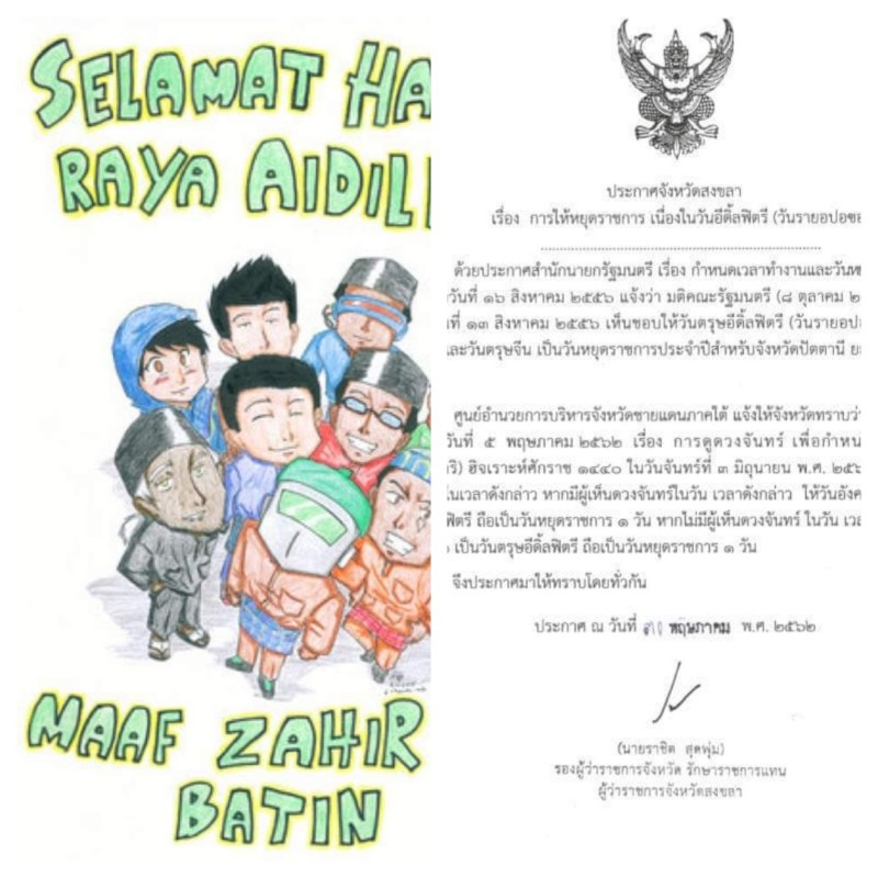 ประกาศหยุดราชการ วันรายอ ‘อีดิ้ลฟิตรี’