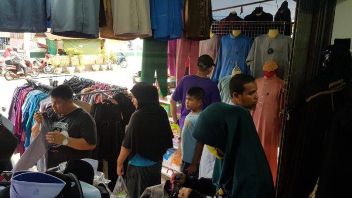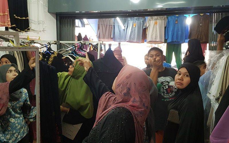 ประชาชนแห่ออกมาซื้อเสื้อของใช้เตรียมฉลองเทศกาลในวันฮารีรายอ อีดิ้ลฟิตรี