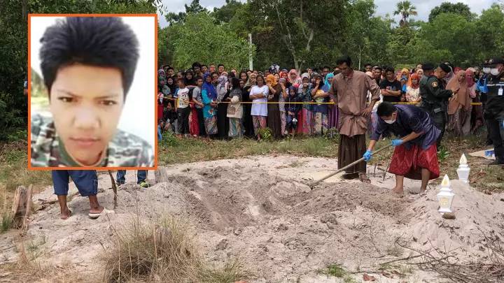 วันนี้ (6 มิ.ย.) ความคืบหน้ากรณีพบศพ นายปรีชา โส๊ะเด็น อายุ 17 ปี หรือ แอ ชาว ม.6 ต.ตลิ่งชัน อ.จะนะ จ.สงขลา ถูกฆ่ามัดมือมัดเท้าฝังดินภายในกุโบร์บ้านบ่อโชน ม.7 ต.สะกอม อ.จะนะ จ.สงขลา หลังหายตัวออกไปจากบ้านตั้งแต่วันที่ 26 พ.ค. ที่ผ่านมา และทางญาติได้เข้าแจ้งความเอาไว้กับตำรวจ สภ.จะนะ ก่อนหน้านี้ ซึ่งจากการสอบสวนในเบื้องต้นพบว่า มีเพื่อน 2 คนมารับที่บ้าน ก่อนที่จะถูกกลุ่มวัยรุ่นคู่อริรุมทำร้ายและยิงจนเสียชีวิต จากนั้นจึงอำพรางศพด้วยการขุดหลุมฝังดินคล้ายกับการฝังศพทั่วไป ก่อนที่จะมีชาวบ้านไปพบในวันฮารีรายอ และแจ้งเจ้าหน้าที่เข้าตรวจสอบเมื่อช่วงเที่ยงของวานนี้นั้น