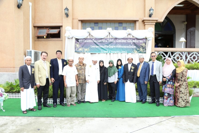 นายณรงค์ สืบตระกูล รองธิบดีกรมที่ดิน กล่าวว่า รู้สึกเป็นเกียรติและยินดีที่มานามกรมที่ดินมอบโฉนดที่ดินให้มัสยิด มัสยิดมีความจำเป็นต้องใช้ที่ดิน มีผู้ประสงค์บริจาคซึ่งกรมที่ดินมีนโฌยบายสนับสนุนการถือครองที่ดินของมัสยิด เพราะไม่ว่าสาสนาใดล้่วนสอนให้คนทำความดี การตั้งมัสยิดเพื่อการปฏิบัติศาสนกิจ เป็นศูนย์รวมของพี่น้องมุสลิมที่จะได้รวมตัวกันเพื่อปฏิบัติศาสนกิจ ในวันนี้ ตามที่มีผู้ประสงค์บริจาคที่ดิน ทางกรมได้จดทะเบียนรับโอนกรรมสิทธิ์จำนวน 7 แปลง ขอให้พวกเราหวงแหนรักษาไว้