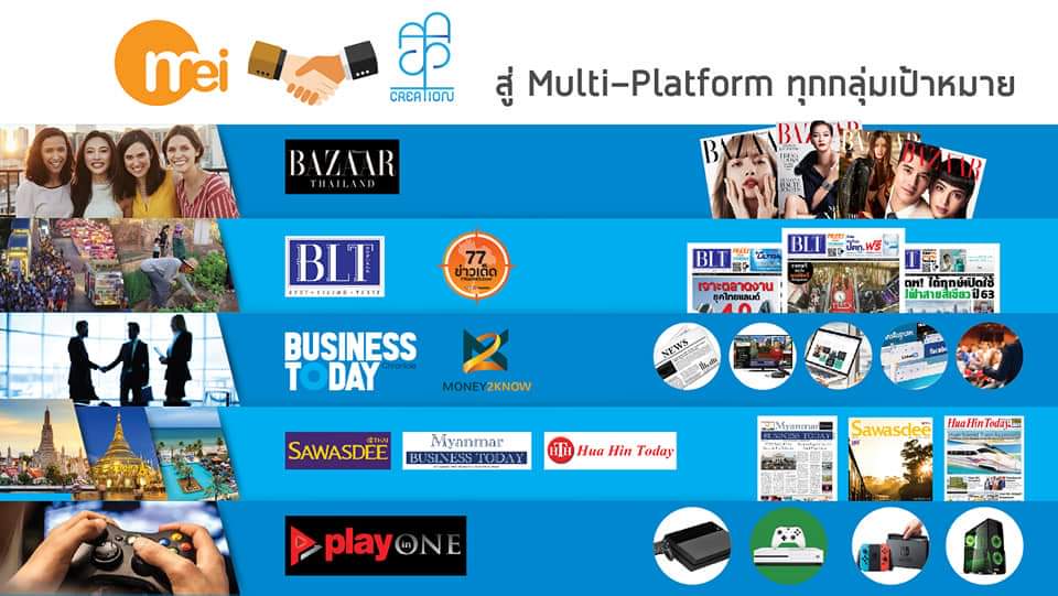 Harper’s Bazaar, Sawaddee Magazine(in-flight magazine ของการบินไทย),หนังสือพิมพ์รายสัปดาห์แบบแจกฟรี BLT, หนังสือพิมพ์ภาษาอังกฤษและเมียนมาร์ Myanmar BusinessToday รายสัปดาห์และหนังสือพิมพ์ภาษาอังกฤษรายเดือนHua Hin Today