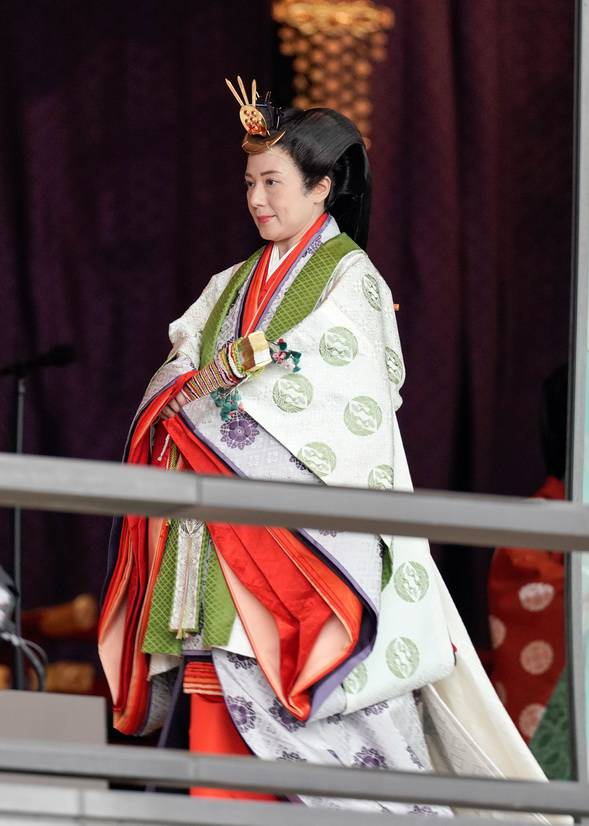 สำหรับพระราชพิธีในวันนี้ เริ่มจากการที่สมเด็จพระจักรพรรดิทรงประกอบพิธีกราบทูล ‘อามาเตราสุ’ เทพีแห่งดวงอาทิตย์ ซึ่งเป็นบรรพบุรุษของจักรพรรดิญี่ปุ่น โดยทรงฉลองพระองค์แบบโบราณเรียกว่า ‘โซกุไต’ (Sokutai) ส่วนสมเด็จพระจักรพรรดินีมาซาโกะในวัย 55 พรรษา ทรงฉลองพระองค์กิโมโน ‘จูนิฮิโตเอะ’ (Junihitoe) ซึ่งประกอบด้วยผ้าขาวถึง 12 ชั้น