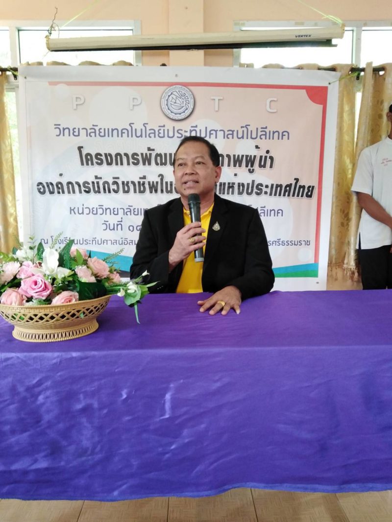 วันที่ 14-15 ธันวาคม 2562 วิทยาลัยเทคโนโลยีประทีปศาสน์ โปลีเทค จังหวัดนครศรีธรรมราช ได้ดำเนินการจัดค่ายพัฒนาศักยภาพผู้นำ องค์การนักวิชาชีพในอนาคตแห่งประเทศไทย และ คณะกรรมการชมรมวิชาชีพ หน่วยวิทยาลัยประทีปาสน์ โปลีเทค โดยมีกิจกรรมถอดบทเรียน องค์การนักวิชาชีพหน่วยมาตรฐานดีเด่นระดับประเทศ จาก วิทยาลัยอาชีวศึกษานครศรีธรรมราช และ วิทยาลัยเทคนิคนครศรีธรรมราช มาแลกเปลี่ยนเรียนรู้ และมีกิจกรรมเสริมภาวะผู้นำอื่น ๆ อีก มากมาย