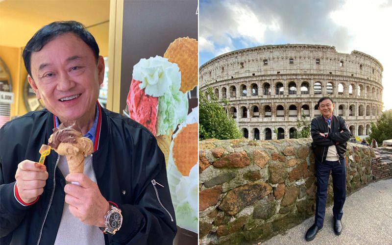 วันที่ 23 ธันวาคม 2562 ความเคลื่อนไหว นายทักษิณ ชินวัตร อดีตนายกรัฐมนตรี ที่อยู่ระหว่างลี้ภัยการเมือง โดย “อุ๋งอิ๋ง” น.ส.แพทองธาร ชินวัตร บุตรสาว ได้โพสต์ภาพคุณพ่อ หรือนายทักษิณ ด้วยสีหน้ายิ้มแย้มมีความสุข ขณะท่องเที่ยวในประเทศอิตาลีพร้อมถือไอศกรีม ส่วนอีกภาพยืนหน้าโคลอสเซียม