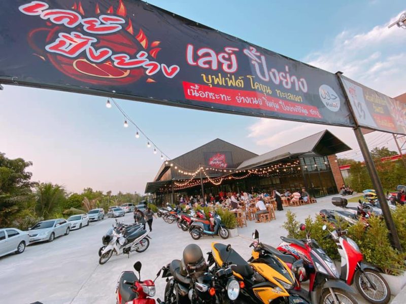 เลย์ ปิ้งย่าง มีอาหารหลากหลายบริหาร อาทิ กุ้ง หอย ทะเลสดๆ เนื้อ ไก่ อาหารคาวหวานอีกมากมาย พร้อมน้ำจิ้มรสเด็ด หลายรสชาติ บรรยากาศดี มีที่จอดรถกว้างขวาง มีห้องละหมาดที่ตกแต่งสวยงาม นอกจากนี้ยังมี ห้องเลี้ยงรับรองไว้บริการ มี ห้องกาแฟ ร้านใหม่ สะอาดสะอ้าน บริการดี ราคาต่อหัว ละ 229 บาท ไม่รวมน้ำดื่ม ช่วงเปิดบริการ มา 4 จ่าย 3