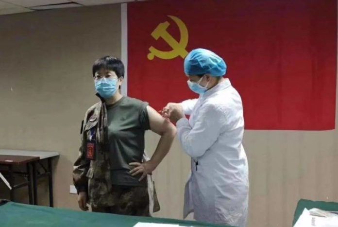 สำหรับภาพที่เห็นมีการฉีดยาให้กับนายทหารหญิง ภาพนั้นเป็นการฉีดกระตุ้นภูมิคุ้มกันก่อนที่จะออกเดินทางไปแนวหน้าที่อู่ฮั่น ตามการรายงานของ 中华网新闻 (China.com)