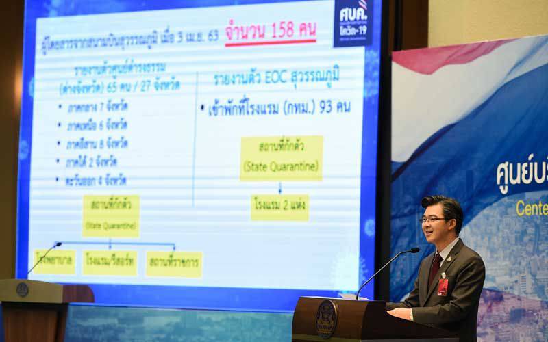 วันที่ 5 เม.ย. 63 เวลา11.30 น. ที่ ทำเนียบรัฐบาล นพ.ทวีศิลป์ วิษณุโยธิน โฆษกศูนย์บริหารสถานการณ์การแพร่ระบาดของโรคติดเชื้อไวรัสโคโรนา 2019 (โควิด-19) หรือ ศบค. แถลงว่า พล.อ.ประยุทธ์ จันทร์โอชา นายกรัฐมนตรี และรมว.กลาโหม ได้ติดตามสถานการณ์กรณี 158 คนไทยเดินทางมาต่างประเทศ ที่ สนามบินสุวรรณภูมิ เมื่อคืนวันที่ 3 เม.ย.63 โดยได้สั่งการให้ผู้รับผิดชอบบูรณาการการทำงานอย่างเต็มที่ จนสามารถให้ทั้งหมดกลับมารายงานตัวอีกครั้ง หลังจากได้หลบหนีกลับภูมิลำเนาไปก่อนหน้านี้ จากเหตุชุลมุน