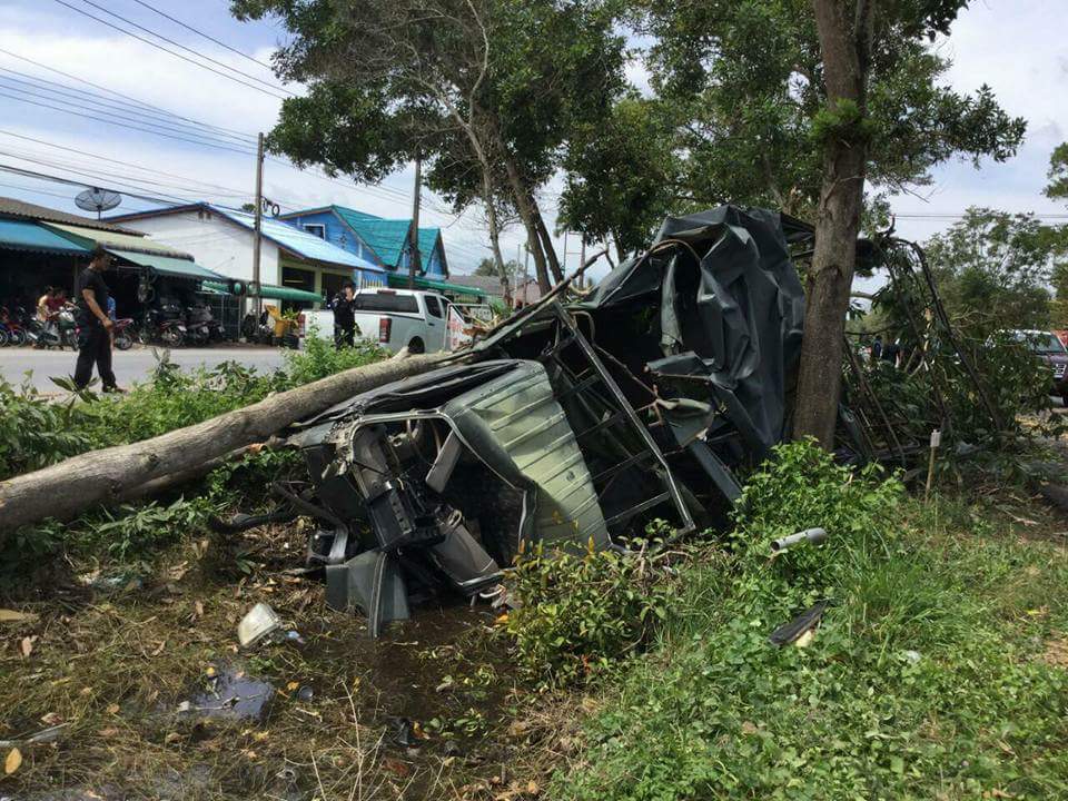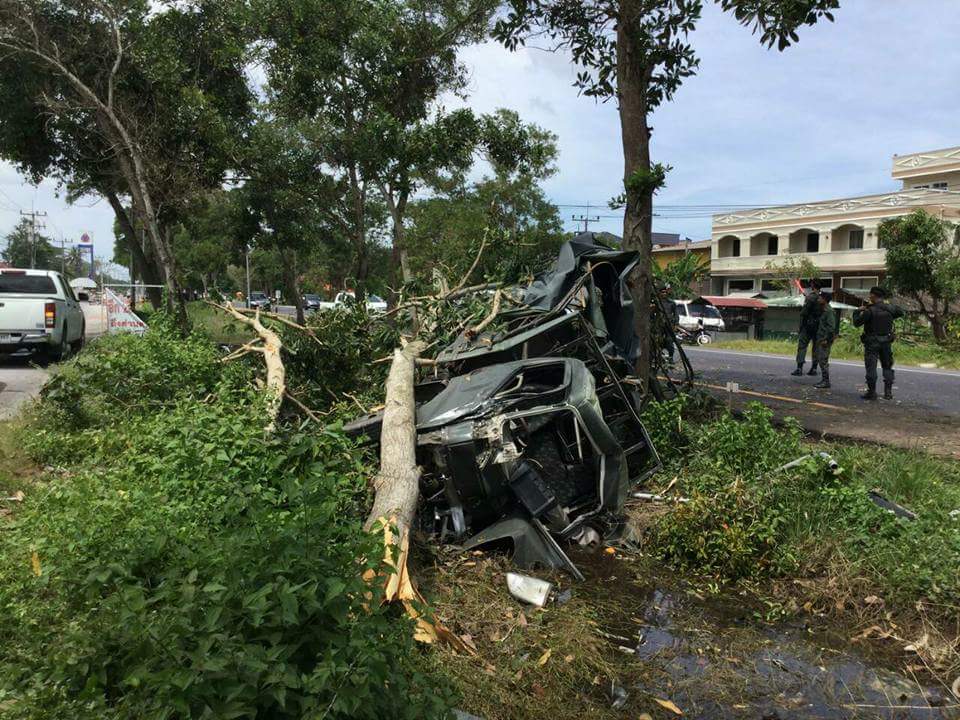 วันที่ 6 ก.พ.60 รถบรรทุกโดยสาร 6 ล้อ กลับจากรับส่งกำลังพลเข้ารับการฝึกหลักสูตรรอง หน.ชป.ฯ ที่นาทวีประสพอุบัติเหตุยางล้อหน้าด้านซ้ายระเบิด ทำให้รถเสียหลักชนต้นไม้ลงข้างทาง บริเวนหน้าปั้มน้ำมัน ก่อนถึงตลาดปาลัส กำลังพลได้รับบาดเจ็บสาหัส1 นาย และบาดเจ็บ 3 นาย ขณะนี้นำส่งรพ.ปะนาเระ กำลังพลได้รับบาดเจ็บ 4 นาย ดังนี้