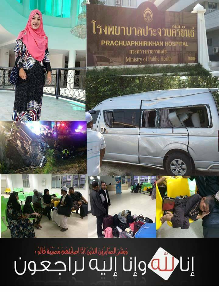 อุบัติเหตุเกิดขึ้นเมื่อกลางดึกวันที่ 12 กุมภาพันธ์ รถตู้โยต้าสีบรอนซ์-เทา ทะเบียน นข 3640 นครศรีธรรมราช ที่บรรทุกคณะครูฟัรดูอีน จากการร่วมงาน วันแห่งครอบครัวคุรสัมพันธ์ ณ มัสยิดน๊ะฮ์ฎ่อตุ้ลอิสละห์ บางบัวทอง นนทบุรี เพื่อเดินทางกลับ อ.หัวไทi จ.นครศรีธรรมราช เกิดพลิกคว่ำ บริเวณถนนเพชรเกษม ฝั่งขาล่องใต้ หลักกม. 328 + 800 หมู่ 4 บ้านสองแกลอน ตำบลห้วยทราย อำเภอเมืองประจวบฯ ในที่เกิดเหตุมีผู้เสียชีวิต 2 ราย เจ็บอีกหลายรายประกอบด้วย