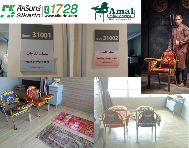 เมื่อเร็วๆ นี้ โรงพยาบาลศิครินทร์ โรงพยาบาลเอกชนชั้นนำในย่านบางนา ได้ให้ความไว้วางใจสั่งเก้าอี้ละหมาดอาม้าล จำนวน 2 ตัว สำหรับใช้ในห้องละหมาดที่เพิ่งสร้างเสร็จใหม่ของโรงพยาบาล ซึ่งตั้งอยู่บนชั้น 10 อาคาร 3 โรงพยาบาลศิครินทร์ บางนา