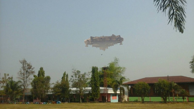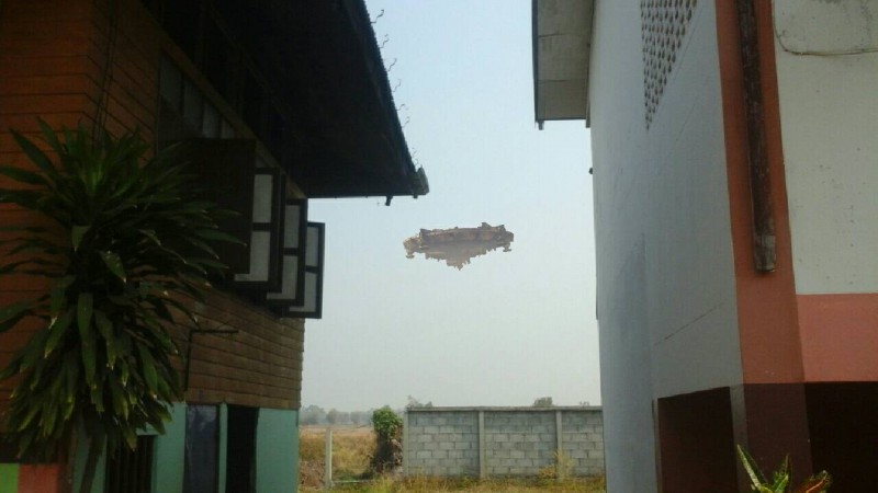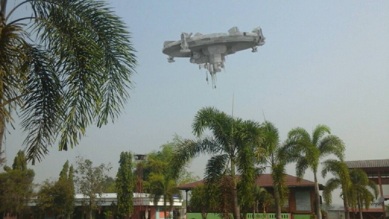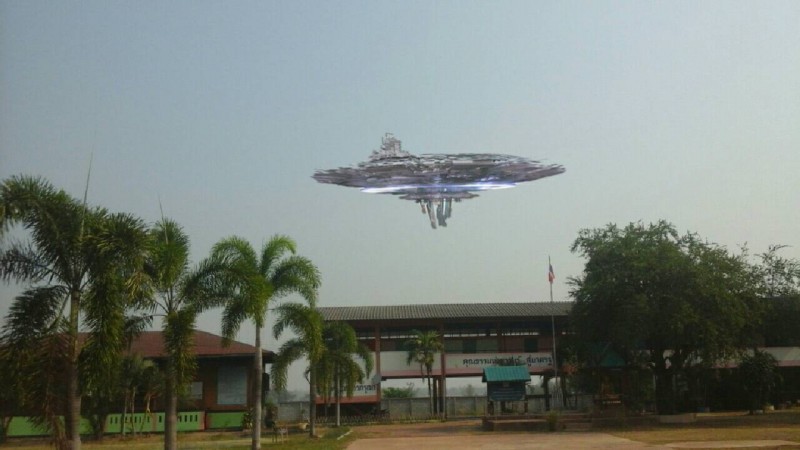 มีการส่งข้อมูลและภาพคล้ายจานบิน ตามโลกโซเชียล ระบุว่า เวลา 06.45 น.24 ก.พ. ได้มีการพบวัตถุประหลาดคล้ายจานบินมนุษย์ต่างดาวบน ร.ร.บ้านหวาย อ.สว่างแดนดิน จ.สกลนคร