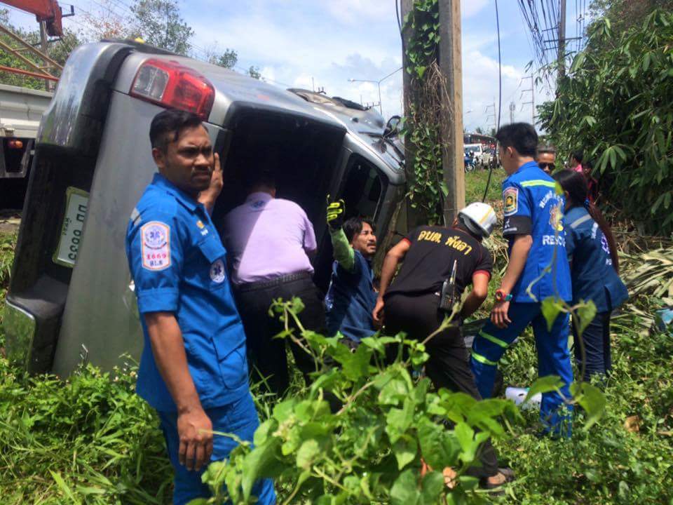 1 มี.ค.60 เวลาประมาณ 12.10 น. พื้นที่ ต.พังลา อ.สะเดา จ.สงขลา รับแจ้งมีอุบัติเหตุทางถนน 2 ในเวลาไล่เรี่ยกัน รายแรกเป็นอุบัติเหตุรถกระบะตกข้างทาง รายที่สองเป็นอุบัติเหตุรถกระบะหลุดโค้งชนรถจยย.ที่จอดอยู่ข้างทาง เหตุที่ ถ.กาญจนวนิช บริเวณโค้งบ้านระตะ พื้นที่ ต.พังลา อ.สะเดา จ.สงขลา เบื้องต้นมีผู้ติดอยู่ใต้รถ หลังรับแจ้งหน่วยกู้ชีพดวงใจได้เร่งรัดตรวจสอบช่วยเหลือ พร้อม ขอสนับสนุนรถอุปกรณ์ตัดถ่าง และรถพยาบาล จาก มูลนิธิกู้ชีพพะตงเทิดธรรม เบื้องต้นมีผู้บาดเจ็บจำนวน 3 ราย สาหัส 1 ราย กู้ชีพในพื้นที่นำส่ง รพ.สะเดา
