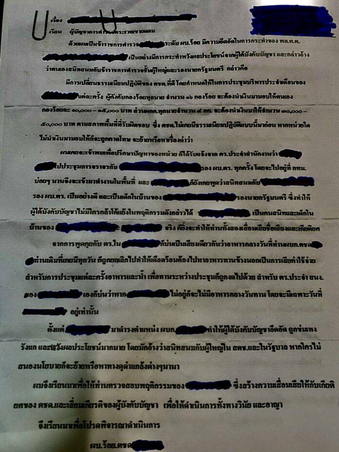 เปิดเอกสาร นายตำรวจตชด. ยศ “พ.ต.ท.” ตชด.สุดทน แฉ ผู้บังคับการ ตชด. มีพฤติกรรม รีดเงินผู้ใต้บังคับบัญชา อ้างสนิทกับ ผู้ใหญ่ใน สตช.และ รองนายกฯ