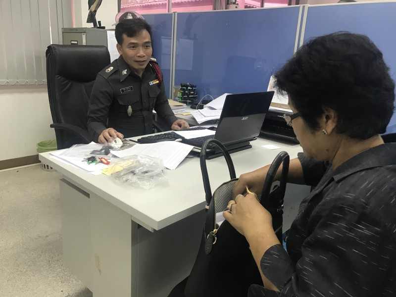 ผู้สื่อข่าวได้พา นางกรรณิการ์ ขันงาม เดินทางไปที่ สภ.เมืองสุรินทร์ แจ้งความต่อ พ.ต.ต.ไชยา เพชรงาม พนักงานสอบสวน สภ.เมืองสุรินทร์ ว่า เมื่อวันที่ 7 มี.ค.60 เวลาประมาณ 13.00 น. ได้เข้าไปไปรอเบิกเงินที่ที่ ธนาคารกรุงไทย สาขาสุรินทร์ ถนนธนสาร ต.ในเมือง อ.เมือง จ.สุรินทร์ หลังเสร็จธุรจากธนาคารแล้ว ได้ออกจากธนาคาร แล้วนั่งรถยนต์กลับบ้าน จนถึงหลัก ก.ม.ที่ 8 ถนนสุรินทร์-ปราสาท ต.เฉนียง อ.เมือง จ.สุรินทร์ พบว่าสร้อยคอทองคำ หนัก 1 บาท พร้อมพระเลี่ยมทองได้ตกหลายไป จึงได้เข้าตรวจสอบที่ธนาคาร และธนาคารได้ให้มาแจ้งความเพื่อขอตรวจสอบกล้องวงจรปิดต่อไป
