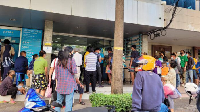 ขณะทึ่เช้าวันนี้ (18 กุมภาพันธ์) ยังมีคนที่ไม่มีสมาร์ทโฟนและลงทะเบียนเราชนะไม่สำเร็จ เดินทางไปลงทะเบียนที่ธนาคารกรุงไทยจำนวนมาก