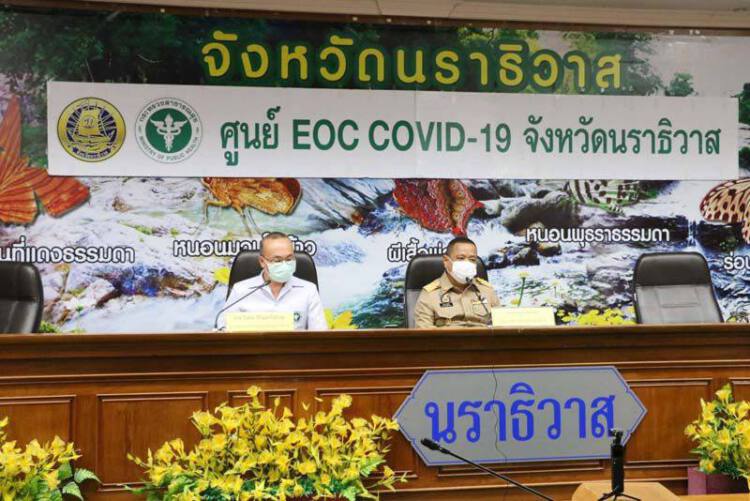 24 พ.ค. 2564 เวลา 11.00 น. ที่ห้องประชุมชั้น 5 ศาลากลางจังหวัดนราธิวาส นายเจษฎา จิตรัตน์ ผู้ว่าราชการจังหวัดนราธิวาส พร้อมด้วย นายแพทย์วิเศษ สิรินทรโสภณ นายแพทย์สาธารณสุขจังหวัดนราธิวาส ร่วมแถลงสถานการณ์โรคติดเชื้อไวรัส (COVID-19) ระลอกเมษายน 64 กรณีคลัสเตอร์สายพันธุ์แอฟริกาใต้ ต.เกาะสะท้อน อ.ตากใบ จ.นราธิวาส และ มาตรการการลักลอบเข้าเมืองผิดกฎหมาย ผ่านช่องทางธรรมชาติ โดยศูนย์ EOC COVID-19 สาธารณสุขจังหวัดนราธิวาส