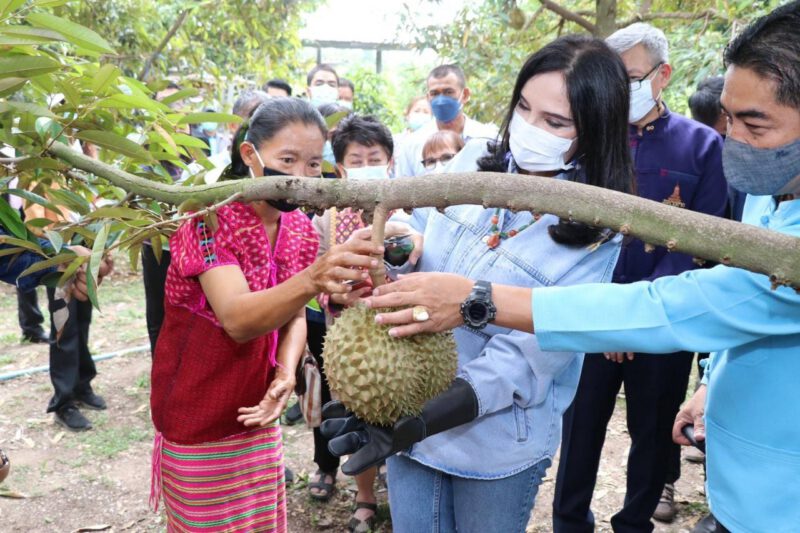 หลังจากนั้น รมช.เกษตรและสหกรณ์ ได้เยี่ยมชมสวนทุเรียน ก่อนตัดทุเรียนเพื่อเปิดงาน Kick Off เริ่มต้นฤดูกาลเก็บเกี่ยวทุเรียนจังหวัดอุทัยธานี ก่อนเดินทาง ไปยังสวนการเกษตรแบบผสมผสานเพื่อเยี่ยมชมสวน ซึ่งมีการปลูกทุเรียนหลากหลายสายพันธุ์ รวมทั้ง โกโก้ น้อยหน่า และ กล้วยหอม
