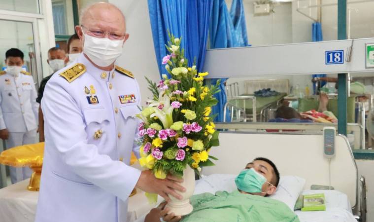 พระบาทสมเด็จพระเจ้าอยู่หัว โปรดเกล้าฯ ให้ ผวจ.ยะลา เชิญดอกไม้และตะกร้าสิ่งของพระราชทาน มอบให้ทหารพราน ที่ได้รับบาดเจ็บจาก ไปป์บอมบ์ ที่ ปัตตานี