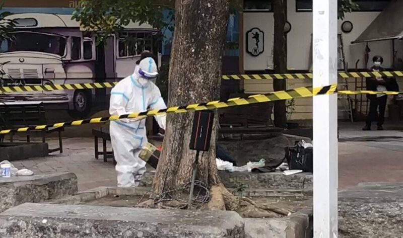 ที่เกิดเหตุ อยู่บริเวณข้างที่นั่งใกล้ต้นไม้บนเกาะพญาไท พบศพชายไม่ทราบชื่อ อายุประมาณ 80 ปี ตรวจสอบตามร่างกายไม่พบบาดแผลหรือร่องรอยถูกทำร้าย ข้างตัวพบกระเป๋าสัมภาระ ภายในมียารักษาโรคเบาหวาน และความดัน รวมทั้งเสื้อผ้าจำนวนหนึ่ง เจ้าหน้าที่จึงสวมชุดพีพีอีเข้าตรวจสอบ โดยแพทย์ได้ทำการตรวจหาเชื้อโควิด-19 ด้วยวิธีแรพิดเทสต์ ผลพบผู้ตายติดเชื้อโควิด-19 เจ้าหน้าที่จึงปิดกั้นพื้นที่ทันทีจากการสอบถาม ร.ต.วิสิษฐ สมบุญ ผู้ดูแลวิคตอรี่พอยต์ เกาะพญาไท เปิดเผยว่า ได้รับแจ้งจากผู้ค้าขายในพื้นที่ว่า พบชายคนดังกล่าวล้มลงหลังจากนั่งดื่มน้ำในบริเวณดังกล่าว จึงได้แจ้งเจ้าหน้าที่ให้มาตรวจสอบ คาดว่าเป็นคนเร่ร่อนที่มาพักบริเวณนี้ตั้งแต่เมื่อคืนที่ผ่านมา ก่อนจะพบว่าเสียชีวิต และเพิ่งเคยเห็นว่าชายคนนี้มานอนพักที่นี่ ไม่ทราบว่ามาจากที่ไหน ซึ่งปกติแล้วบริเวณนี้ก็จะมีคนเร่ร่อนมาพักอยู่เป็นประจำ แม้แจ้งให้หน่วยงานที่เกี่ยวข้องมาดำเนินการแล้ว แต่ก็ยังมีคนมาพักอาศัยอยู่เรื่อยๆ