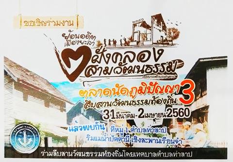 เทศบาลตำบลท่าสาป ร่วมกับเทศบาลนครยะลา อำเภอเมืองยะลา และสำนักงานวัฒนธรรมจังหวัดยะลา เตรียมจัดงานใหญ่ที่น่าสนใจ ซึ่งกำหนดจัดขึ้นในวันศุกร์ที่ 31 มีนาคม – 2 เมษายน 2560 ณ บริเวณท่าแพเก่า เชิงสะพานเรือนจำ หมู่ที่ 1 ตำบลท่าสาป อำเภอเมือง จังหวัดยะลา ซึ่ง เป็นการจัดงานตลาดนัดย้อนยุคที่กำลังนิยมได้รับความนิยมและตอบรับจากนักท่องเที่ยวเป็นอย่างมากในพื้นที่จังหวัดชายแดนภาคใต้ในขณะนี้
