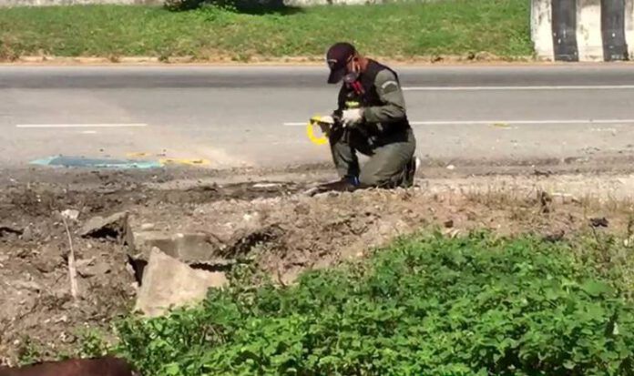ล่าสุดจากการตรวจสอบในที่เกิดเหตุ พบพื้นเกาะกลางถนนมีร่องรอยถูกสะเก็ดระเบิดเป็นหลุดลึก และมีเศษซากชิ้นส่วนของระเบิดแสวงเครื่องที่คนร้ายประกอบใส่ไว้ในถังแก๊สปิกนิก หนัก 25 กิโลกรัม จุดชนวนด้วยวิทยุสื่อสาร ตกกระจายเกลื่อนพื้นที่ถนน รวมทั้งมีเศษซากชิ้นส่วนของถังขยะเทศบาลตำบลต้นไทรสีเขียวตกกระจายคลุกเคล้าไปด้วย เจ้าหน้าที่จึงได้เก็บรวบรวมหลักฐานในที่เกิดเหตุ