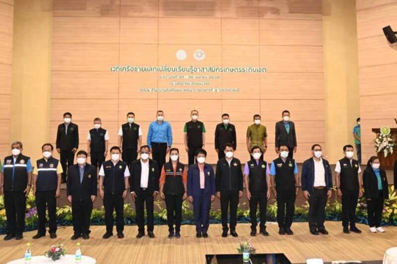 นายเฉลิมชัย ศรีอ่อน รมว.เกษตรและสหกรณ์ เป็นประธานเปิดเวทีเครือข่ายแลกเปลี่ยนเรียนรู้อาสาสมัครเกษตรระดับเขต ณ แสนปาล์ม เทรนนิ่ง โฮม อำเภอกำแพงแสน จังหวัดนครปฐม โดยมีนายธนา ชีรวินิจ เลขาฯรมว.เกษตรและสหกรณ์ นายนวนิตย์ พลเคน รองอธิบดีกรมส่งเสริมการเกษตร พร้อมผู้บริหารกระทรวงเกษตรฯ และเจ้าหน้าที่เกี่ยวข้องเข้าร่วมงาน สำหรับการจัดทำเวทีเครือข่ายฯในครั้งนี้มีวัตถุประสงค์เพื่อยกย่อง เชิดชูเกียรติ และประชาสัมพันธ์ผลงานของอาสาสมัครเกษตรหมู่บ้าน (อกม.) ให้มีขวัญกำลังใจในการปฏิบัติงาน มีระบบการทำงานตามบทบาทหน้าที่ สร้างบทบาทการมีส่วนร่วมในการพัฒนางานส่งเสริมการเกษตรในพื้นที่ และสามารถเชื่อมโยงกับเครือข่ายต่างๆ ได้อย่างมีประสิทธิภาพ พร้อมทั้งกำหนดกิจกรรมด้านการเกษตรที่จะดำเนินการ และเกิดเครือข่ายการบริการแก่เกษตรกรในชุมชนได้รมว.เกษตรและสหกรณ์ เปิดเผยว่า การขับเคลื่อนงานอาสาสมัครเกษตรหมู่บ้าน ถือเป็นนโยบายหลักของกระทรวงเกษตรและสหกรณ์ ที่จะต้องดำเนินการให้เกิดผลสำเร็จเป็นรูปธรรม ซึ่งที่ผ่านมาอาสาสมัครเกษตรหมู่บ้าน ได้ปฏิบัติงานจัดเก็บรวบรวม และรายงานข้อมูลพื้นฐานด้านการเกษตร ร่วมกับคณะกรรมการหมู่บ้านในการจัดทำแผนพัฒนาการเกษตรระดับหมู่บ้าน ประสานงานในการถ่ายทอดความรู้และการแก้ไขปัญหาของเกษตรกรในหมู่บ้าน รวมทั้งติดตามสถานการณ์การเกษตรในหมู่บ้าน พร้อมรายงานเหตุการณ์ฉุกเฉินเร่งด่วนต่อหน่วยงานที่เกี่ยวข้อง โดยเฉพาะอย่างยิ่งในสถานการณ์การแพร่ระบาดของโรคติดต่อเชื้อไวรัสโคโรนา 2019 (COVID-19) อาสาสมัครเกษตรหมู่บ้านได้ช่วยปฏิบัติหน้าที่อย่างเข้มแข็ง ลงพื้นที่เคียงข้างกับเจ้าหน้าที่ส่งเสริมการเกษตรในการประชาสัมพันธ์ชี้แจงข้อมูลโครงการเยียวยาเกษตรกรฯ ตรวจสอบความถูกต้องของเอกสาร เก็บรวบรวมใบสมัครนำส่งสำนักงานเกษตรอำเภอ เพื่อดำเนินการขึ้นทะเบียนและปรับปรุงทะเบียนเกษตรกร ส่งข้อมูลให้กระทรวงเกษตรและสหกรณ์จ่ายเงินช่วยเหลือเยียวยาพี่น้องเกษตรกรด้วยความเรียบร้อย ทั่วถึง และรวดเร็ว จนสำเร็จลุล่วงตามวัตถุประสงค์ของโครงการ