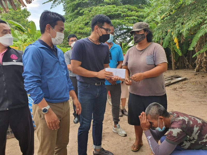 นายวิภูษิต มีสิทธิ์ (ทนายเบิร์ด) คณะทำงานรัฐมนตรีว่าการกระทรวงการพัฒนาสังคมและความมั่นคงของมนุษย์ กล่าว่า ตนได้รับแจ้งจากอาจารย์พรอำไพ ยิ่งดี อาจารย์ที่ปรึกษา เป็นอาจารย์สอนอยู่ที่โรงเรียนเทนมีย์มิตรประชา มีครอบครัวของน้องปอ ได้รับความลำบากในเรื่องที่อยู่อาศัย และก็ฐานะยากจน รวมถึงคุณแม่ที่มีปัญาหาด้านสุภาพจิต ตนในฐานะที่เป็นคณะทำงานรัฐมนตรีว่าการกระทรวงการพัฒนาสังคมและความมั่นคงได้ประสานไปยังกระทรวงการพัฒนาสังคมและความมั่นคง ทางกระทรวงฯได้แจ้งว่าให้ประสานมาที่ พมจ.สุรินทร์ ให้มาดูแล จึงได้ร่วมมือกับ พมจ.สุรินทร์ มาดูความเป็นอยู่ของครอบครัวน้องปอ วันนี้ก็ในส่วนของภาครัฐเข้ามาดูแลก็จะมีทั้ง พมจ.สุรินทร์, ผู้นำท้องถิ่น, อบต.ตาอ็อง, และภาคประชาชนในนามทีมทนายเบิร์ด อาสาช่วยพี่น้องชาวสุรินทร์ได้นำเงินมาบริจาคให้เบื้องต้น 3,500 บาท และน้ำดื่ม 12 แพ็ค พร้อมกับได้มีการพูดคุยกับทางฝั่งเจ้าหน้าที่ พมจ.สุรินทร์ เราทำโครงการตรงกันว่า อยากจะช่วยครอบครัวนี้ในเบื้องต้นก็คือเรื่องที่อยู่อาศัย จากที่เห็นที่อยู่อาศัยค่อนข้างไม่ปลอดภัยสำหรับเด็กผู้หญิง 2 คน ทั้งนี้การจะสร้างบ้านที่อยู่อาศัยก็ต้องประชุมปรึกษาหารือในหลายภาคส่วนต่อไป