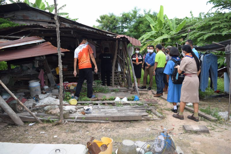 นายไทย อายุ 43 ปี (พ่อเลี้ยงของเด็กหญิงปอ) กล่าวว่า ตนนั้นใช้ชีวิตความเป็นอยู่ลำบากมาก ลูกไปโรงเรียนก็ลำบาก การกินก็ลำบาก ตนนั้นมีลูก 2 คน ลูกติดภรรยาคนหนึ่ง(น้องปอ) และลูกตนคนหนึ่งเป็นลูกผู้หญิงทั้ง 2 คน ซึ่งตนอยู่บ้านหลังนี้ทั้งหมด 4 คน ช่วงเวลาฝนตกก็จะเข้าไปหลบอยู่อีกหลังหนึ่งเล็ก ๆ ซึ่งหลังนี้อยู่ไม่ได้ โดยตนนั้นมีอาชีพทำงานและเล่นดนตรีตามห้องอาหารพอมาเจอช่วงโควิด ตนนั้นก็ว่างงานมาตลอดซึ่งแต่ก่อนตนเล่นทุกวันมีเงินตรงนี้ได้เลี้ยงลูก วันนี้ได้มีหน่วยงานและภาคเอกชนเข้ามาช่วยเหลือตนรู้สึกดีใจมากจนตนอยากน้ำตาไหล