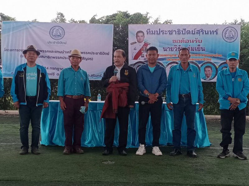 วันที่ 24 กรกฏาคม 2565 ที่สนามกีฬาคลิกออฟเอฟซี ทีมพรรคประชาธิปัตย์จังหวัดสุรินทร์ อบรมสมาชิกพรรคและเกนนำเครือข่ายพรรคประชาธิปัตย์ พร้อมกับรับเรื่องร้องทุกข์ของประชาชนในพื้นที่จังหวัดสุรินทร์ โดยมีนายวิรัช ร่มเย็น นายทะเบียนสมาชิกพรรคประชาธิปัตย์ คณะนายทะเบียนสมาชิกพรรคร่วมอบรมสมาชิกพรรคและเกนนำเครือข่ายพรรคประชาธิปัตย์ พร้อมกับเปิดตัวผู้สมัครของพรรค 6 คน ซึ่งมีนายวิภูษิต มีสิทธิ์, ภูมิสิน กาละแวก, องอาจ โสรถาวร, ยรรยง ผิวอ่อน, ทวีศักดิ์ ยงยิ่งยืน, และ ไพบูรณ์ ศิริมา โดยในภาคเช้านายวิภูษิต มีสิทธิ์ ได้กล่าวถึงการอบรมสมาชิกพรรคและเกนนำเครือข่ายพรรคประชาธิปัตย์ ต่อมานายวิรัช ร่มเย็น นายทะเบียน สมาชิกพรรคประชาธิปัตย์ บรรยายหัวข้อ สถานการณ์การเมืองปัจจุบัน พร้อมกับได้ให้ชาวบ้านแจ้งถึงความเดือดร้อน ซึ่งส่วนมากเรื่องที่ดินทำกิน