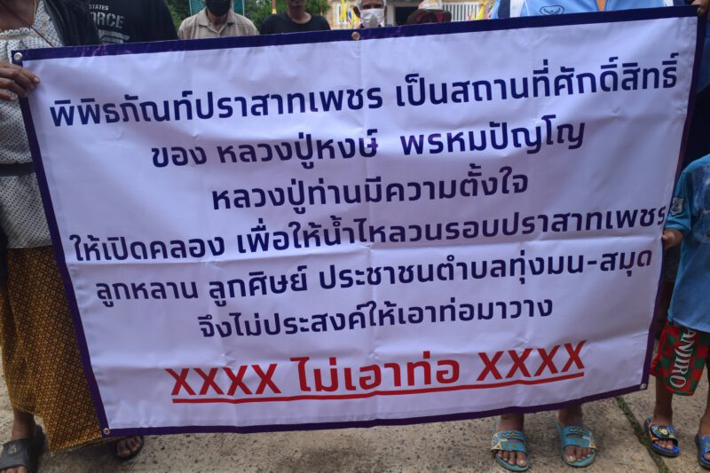 “พิพิธภัณฑ์ปราสาทเพชร เป็นสถานที่ศักดิ์สิทธิ์ ของ หลวงปู่หงษ์ พรหมปัญโญ หลวงปู่ท่านมีความตั้งใจ ให้เปิดคลอง เพื่อให้น้ำไหลวนรอบปราสาทเพชร ลูกหลาน ลูกศิษย์ ประชาชนตำบลทุ่งมน-สมุด จึงไม่ประสงค์ให้เอาท่อมาวาง XXXX ไม่เอาท่อ XXXX”