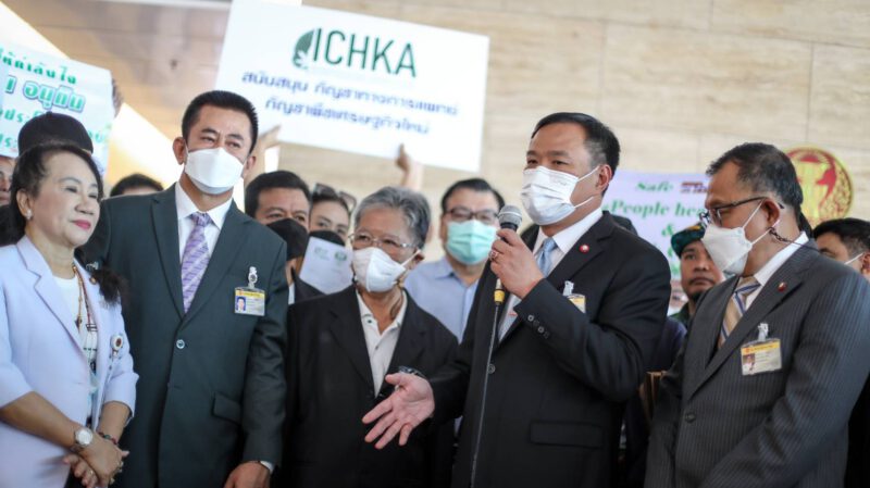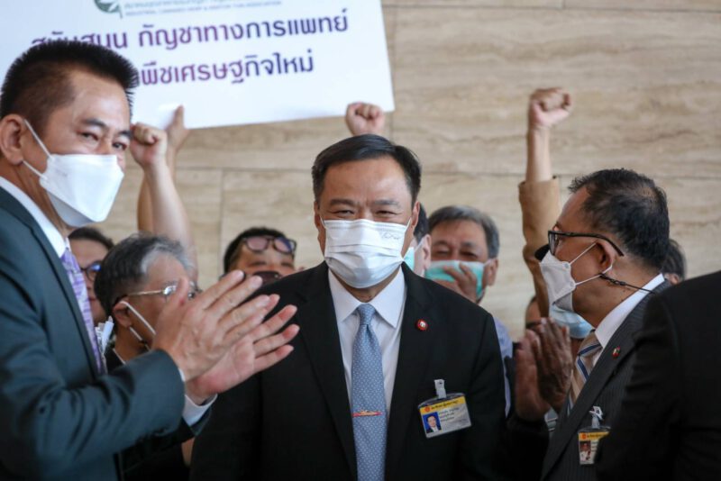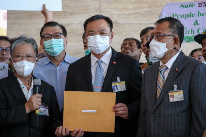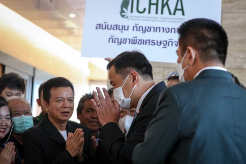 วันที่ 2 พ.ย. 2565 ที่ รัฐสภาเกียกกาย กทม. นายประพัฒน์ ปัญญาชาติรักษ์ ประธานสภาเกษตรกรแห่งชาติ และ เครือข่ายกัญชาภาคประชาชน ประกอบไปด้วย กลุ่ม “ลุงดำ” ปราชญ์ชาวบ้าน พรรคเขียว และ กลุ่มเคือข่ายธุรกิจกัญชา กัญชง และกระท่อม ได้เดินทางมายื่นหนังสือต่อ นายอนุทิน ชาญวีรกูล หัวหน้าพรรคภูมิใจไทย (ภท.) และ คณะ ส.ส.พรรคภูมิใจไทย เพื่อสนับสนุน ร่าง พ.ร.บ.กัญชา กัญชงฯนายอนุทิน กล่าวขอบคุณผู้แทนเครือข่ายประชาชนกัญชาทางการแพทย์ ที่สนับสนุนร่างกฎหมายของพรรคภูมิใจไทย ยืนยันว่า ขณะนี้ วิปรัฐบาล ได้มีมติให้พรรคร่วมรัฐบาล ลงมติเห็นชอบตามมติของ กมธ.แล้ว แต่ขออย่าเพิ่งดีใจ เพราะมีพรรคร่วมรัฐบาลบางพรรค ยังไม่มีความชัดเจน มีการอ้างเรื่องกัญชาเสรี แต่ไม่เคยพูดถึงกัญชาทางการแพทย์ ย้ำว่าร่างกฎหมายฉบับนี้ ไม่ได้มีเพื่อสันทนาการ อย่างที่มีการพูดถึง และมีบทลงโทษ บทควบคุมการสูบที่ชัดเจน แต่บางพรรคที่ออกมาบอกว่าเป็นห่วงประชาชน กลับไม่สนับสนุนร่างกฎหมายที่ออกมาเพื่อควบคุมกัญชา มันเป็นเรื่องที่ย้อนแย้งกัน ดังนั้นขอให้ไปยื่นกับพรรคเหล่านั้นดีกว่า มายื่นกับพรรคภูมิใจไทย เพราะพรรคภูมิใจไทยสนับสนุนกฎหมายนี้อยู่แล้ว