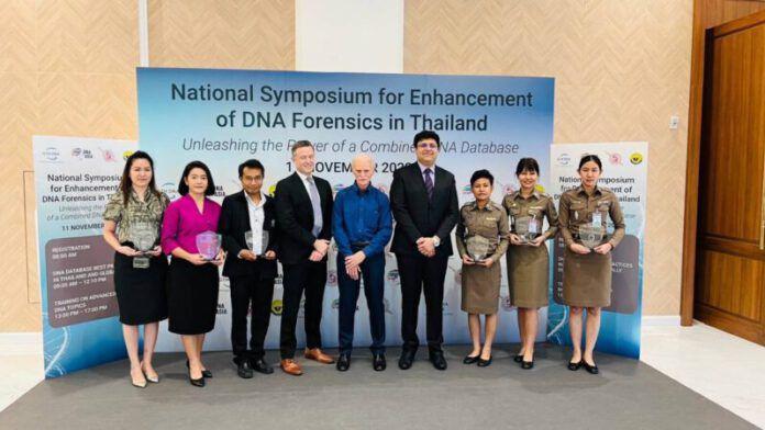 การสัมมนาครั้งนี้จัดโดย Gordon Thomas Honeywell Government Affairs (GTH-GA) หน่วยงานระหว่างประเทศที่ดูแลเกี่ยวกับกฎหมาย และนโยบาย ฐานข้อมูลดีเอ็นเอ และมีการบรรยายพิเศษจาก Mr. Tim Schelberge ประธาน GTH-GA ในหัวข้อ วิธีการปฏิบัติระดับสากลในการใช้ฐานข้อมูล ดีเอ็นเอ และตัวอย่างคดีจากต่างประเทศที่สามารถนําไปสู่การจับกุมผู้กระทําความผิด เป็นการเน้นย้ำถึงความสําคัญของการจัดตั้งฐานข้อมูลดีเอ็นเอ โดย Mr. Tim กล่าวว่าหากมีฐานข้อมูลดีเอ็นเอแห่งชาติจะสามารถสืบหาจับกุมตัวคนร้ายได้ทันท่วงที ลดความสูญเสียต่อครอบครัวเหยื่อ และหากมีข้อมูลดีเอ็นเอในฐานข้อมูลมากเท่าไหร่ ก็จะยิ่งเพิ่มประสิทธิภาพในการนำไปใช้ในกระบวนการยุติธรรมมากขึ้นนอกจากนี้ ผู้ช่วยศาสตราจารย์ วรวีร์ ไวยวุฒิ รองผู้อำนวยการสถาบันนิติวิทยาศาสตร์ ร่วมบรรยายเกี่ยวกับกระบวนการจัดเก็บตัวอย่างดีเอ็นเอผู้ต้องขัง และกระบวนการตรวจพิสูจน์ในห้องปฏิบัติการเพื่อจัดทําฐานข้อมูลดีเอ็นเอของสถาบันนิติวิทยาศาสตร์ ซึ่งได้รับการรับรองในระบบมาตรฐาน ISO 17025:2017 ร่วมด้วย พลตำรวจตรีหญิง สุเจตนา โสตถิพันธุ์ ผู้บังคับการ ศพฐ.1 บรรยายเรื่องการจัดเก็บตัวอย่างดีเอ็นเอผู้ต้องขังทั่วประเทศ และการปฏิบัติงานร่วมกันในการจัดส่งรูปแบบสารพันธุกรรมเพื่อเปรียบเทียบในฐานข้อมูลสารพันธุกรรมของสถาบันนิติวิทยาศาสตร์จนประสบความสําเร็จในหลายคดี และในอนาคตจะได้มีการส่งเปรียบเทียบรูปแบบสารพันธุกรรมผ่านทางระบบปฏิบัติการอิเล็กทรอนิกส์เพื่อความรวดเร็วยิ่งขึ้นและเป็นประโยชน์สูงสุดต่อกระบวนการตรวจพิสูจน์ การสัมมนาครั้งนี้ยังได้รับเกียรติจากผู้ทรงคุณวุฒิ Professor Dr. Bruce Budowle นักวิจัยระดับโลก จากมหาวิทยาลัยเฮลซิงกิ ประเทศฟินแลนด์ ร่วมบรรยายและสัมมนาเชิงปฏิบัติการในหัวข้อ Introduction to Likelihood Ratio Principles and DNA Mixtures และ Interpretation of complex DNA Profiles & Mixtures, Increased sensitivity of detection and reduced consumption of DNA Samples in Casework เพื่อยกระดับความสามารถของบุคลากรด้านการวิเคราะห์และการแปลผลการตรวจพิสูจน์สารพันธุกรรมทางคดีของประเทศไทย